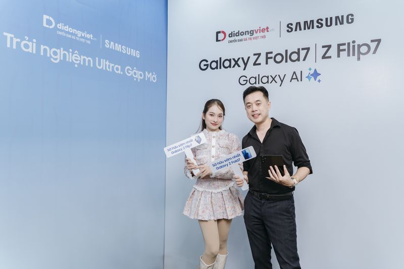 Tại sự kiện Di Động Việt mở bán sớm, đông đảo khách hàng, reviewer, KOLs và các nghệ sĩ đã trải nghiệm và đánh giá cao về thiết kế cao cấp, tính năng thông minh và khả năng vận hành mượt mà trên cả Galazy Z Fold7 và Z Flip7.