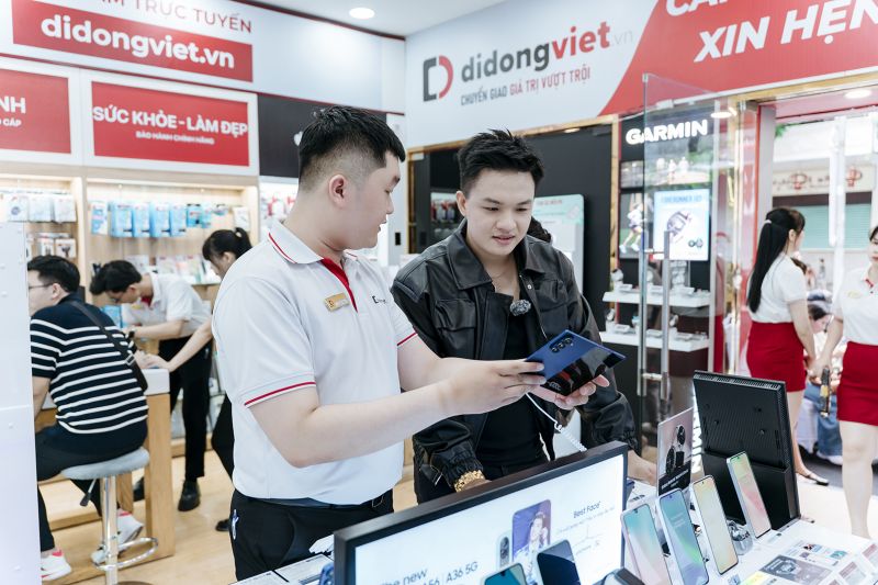Khách hàng đến trải nghiệm, mua Samsung Galaxy Z Fold7, Z Flip7 tại Di Động Việt.