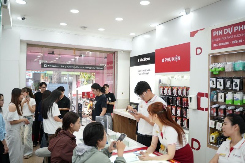 Đại diện Di Động Việt cho biết, trong ngày đầu mở bán, phần lớn khách hàng đến nhận máy là những người đã tham gia đặt cọc từ trước, trong khi nhóm khách hàng phát sinh giao dịch trực tiếp trong ngày chiếm khoảng 40%. Bên cạnh đó, lượng khách đến trải nghiệm và nhận máy tập trung chủ yếu ở nhóm học sinh - sinh viên, chiếm khoảng 78% tổng lượng khách.