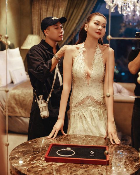 Tối qua, không chỉ gây chú ý về việc sánh đôi ông xã điển trai, Thanh Hằng còn toả sáng với bộ trang sức có tổng giá trị gần 5,1 tỷ đồng của thương hiệu xa xỉ Cartier. Trong đó, dây chuyền có giá hơn 3,7 tỷ đồng, bông tai gần 500 triệu đồng, chiếc nhẫn trị giá gần 900 triệu đồng.