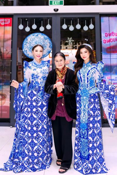 Lý Hương và con gái Jessica Lý rạng rỡ trong mẫu áo dài đặc sắc của NTK Tuấn Hải