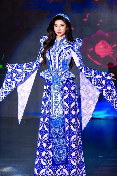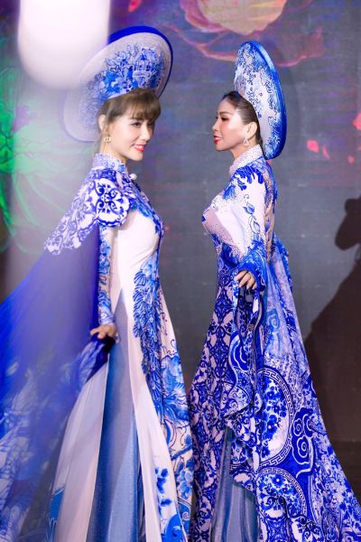Ở phần diễn thời trang này, con gái Jessica Lý cũng tham gia trình diễn. Với thiết kế áo dài sang trọng vẻ gấm vân hoa xanh, Lý Hương thể hiện vẻ đẹp người phụ nữ quyền uy bản lĩnh khi diện áo dài với chiếc khánh to bản. Ngược lại Jessica Lý lại toát lên vẻ đẹp hiện đại,trẻ trung khi diện áo dài tay phồng kết hợp chiếc nón bé xinh sang cài hờ hững trên mái tóc. Hai phong cách thời trang áo dài này được NTK Tuấn Hải chăm chút thiết kế như đo ni đóng giày cho Lý Hương và con gái cũng như góp phần tôn vinh vẻ đẹp hiện đại của người phụ nữ Việt hôm nay.