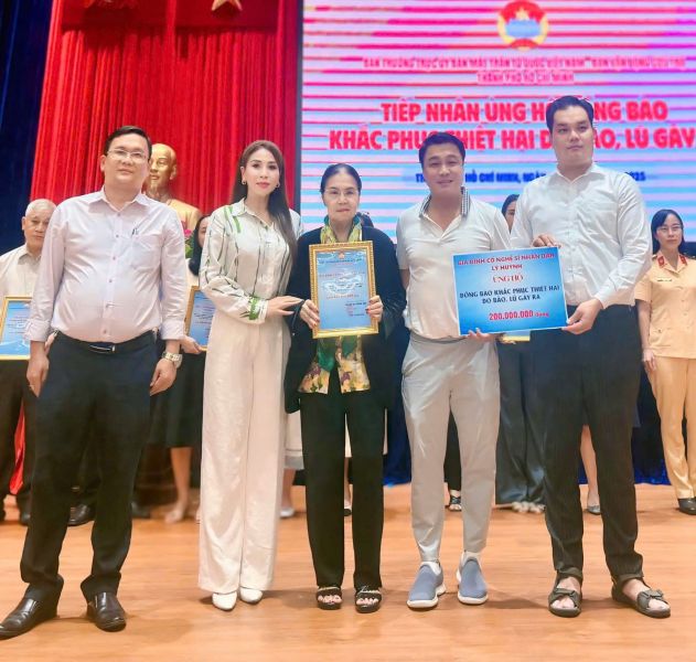 Trước đó, Lý Hương cùng anh trai - diễn viên Lý Hùng đến Ủy ban Mặt trận Tổ quốc Việt Nam ủng hộ 200 triệu để cứu trợ bà con miền Trung chịu bão lũ vừa qua.