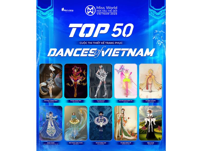 Thuộc khuôn khổ Miss World Vietnam 2025, cuộc thi thiết kế trang phục “Dances of Vietnam” là sân chơi tôn vinh bản sắc văn hóa Việt qua ngôn ngữ thời trang, thu hút hơn 300 bài dự thi từ khắp cả nước.