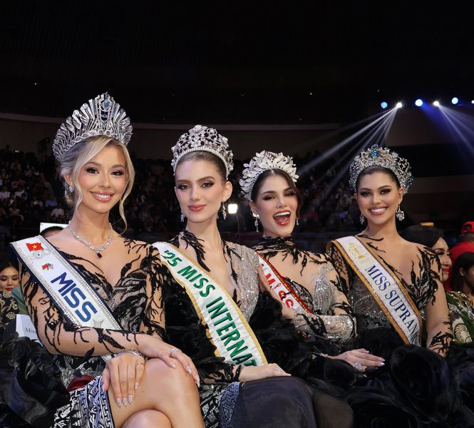 Trên sân khấu, Hoa hậu Yolina Lindquist xuất hiện cùng ba Hoa hậu quốc tế đương nhiệm gồm Miss International 2025, Miss Supranational 2025 và Miss Charm 2025, tạo nên một khoảnh khắc giao thoa đáng chú ý giữa các đại diện nhan sắc toàn cầu.