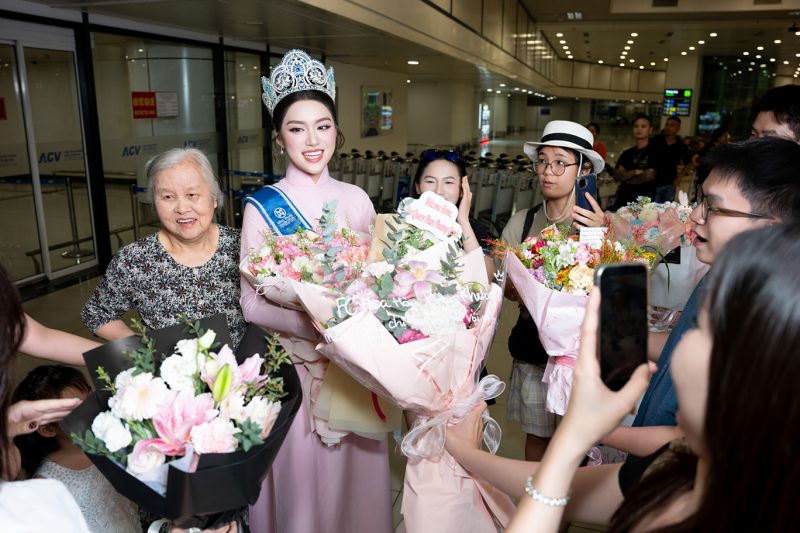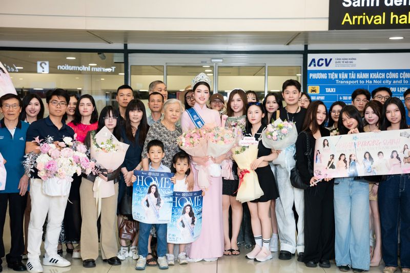 Hoa hậu Phan Phương Oanh đáp sân bay Nội Bài trong sự chào đón của người thân, bạn bè và đông đảo khán giả. Cô trở về Hà Nội thăm gia đình sau tròn một tháng đăng quang Miss World Vietnam 2025.