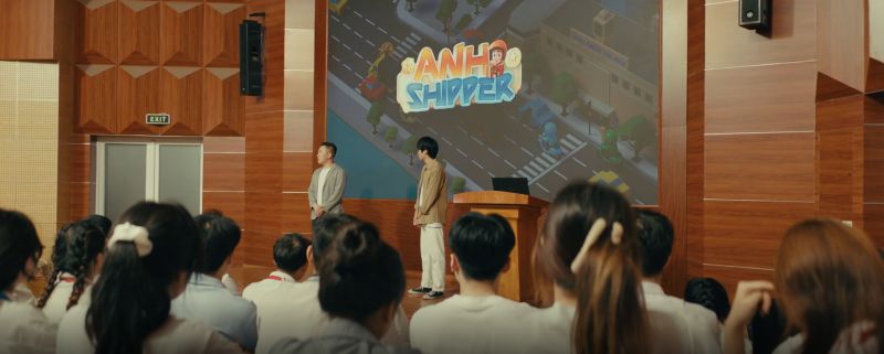 Điểm nhấn của bức ảnh là đứa bé Tiến địu trước ngực. Liệu có phải chàng sinh viên sớm làm bố đơn thân giữa lúc chuyện khởi nghiệp còn chưa thành hình? Ẩn số này được giải đáp khi phim ra rạp từ ngày 10/12/2025.